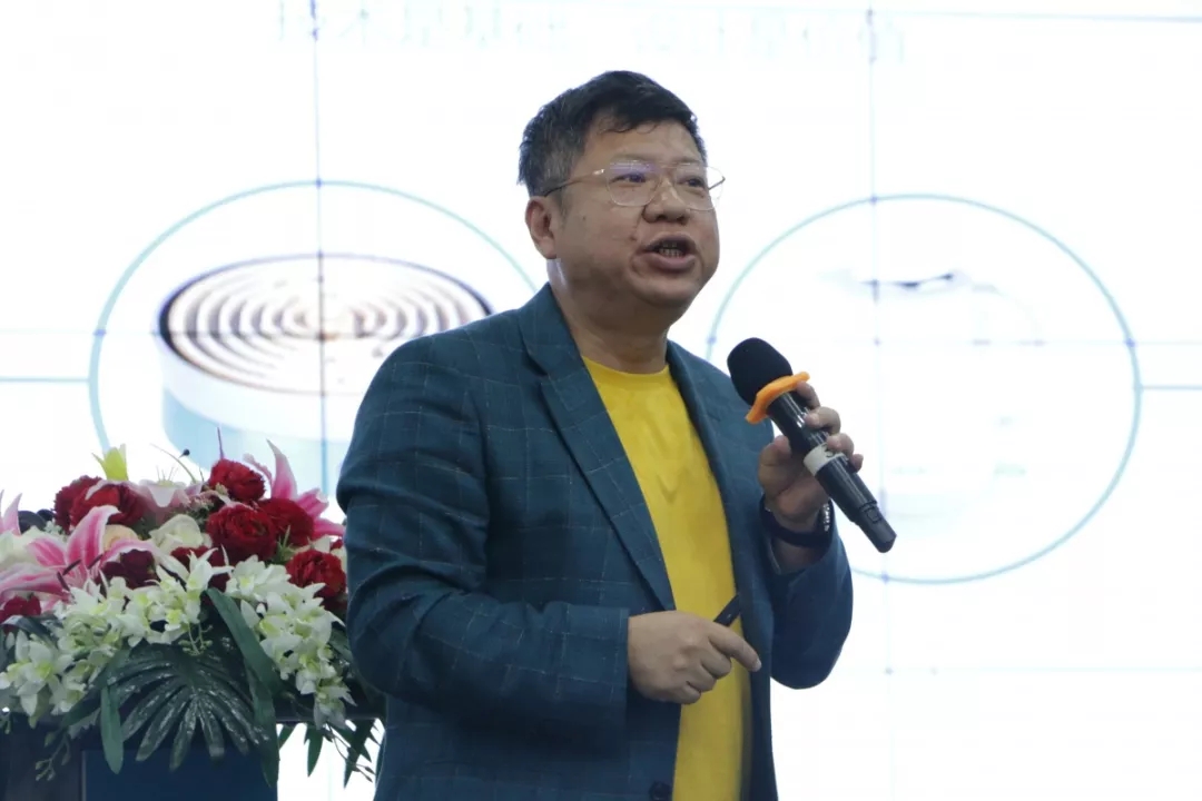 授課結束后,基準設計機構派出以聯合創始人劉開先生和設計總監劉坤為首的設計團隊,攜新產品“鮮米粉機”正式面向大眾。這是基準設計2019年優秀作品之一,鮮米粉機的設計理念是為中小型早餐店打造,體積小,不需要廠家配送米粉,不用為缺少米粉等待配送而發愁,現做現吃,實現店家自己生產。整個米粉成型過程可見,安全、干凈、健康,從源頭保持米粉新鮮,全過程完全無任何添加,更好地得到消費者信賴。
